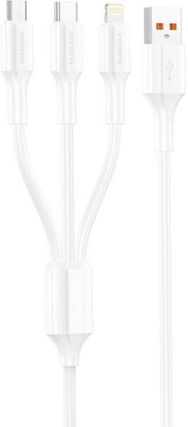 3-in-1 USB to USB-C / Micro USB / Lightning cable Foneng XS01 , 3A, 1.2m (White) Foneng XS01 3-in-1 USB to USB-C / Micro USB / Lightning cable , 3A, 1.2m (White) The 1.2m long 3-in-1 Foneng XS01 cable is a versatile fast charging solution that supports PD27W and 60W technologies, making it ideal for charging smartphones, tablets and laptops. Equipped with USB-C, Micro USB and Lightning connectors,
