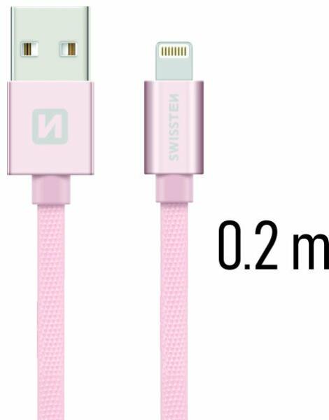 Adatkábel Swissten textil Lightning konnektorral gyorstöltéssel, Rose GoldNULL...