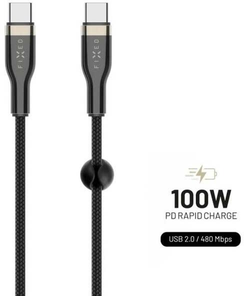 FIXED Fonott töltő-, és adatkábel USB-C/USB-C PD támogatással, 1,2 m, USB 2.0, 100 W, feketeNULL...