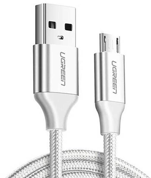 Ugreen US290 60152 kábel USB-A / micro USB csatlakozókkal, 2.4A áramerősséggel, 1.5 m hosszúsággal - fehér Az Ugreen US290 kábel nem csak funkcionális, hanem szilárd szerkezettel is rendelkezik, amely garantálja a hosszú távú megbízhatóságot. Ennek a kábelnek köszönhetően kamerákat, régebbi telefonokat, zenelejátszókat vagy e-book olvasókat tölthetsz maximális 2.4A tel