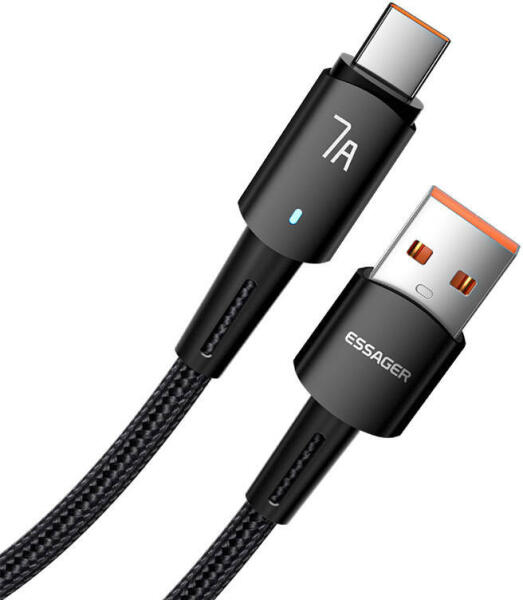 USB-A to USB-C cable, Essager, EXC7A-CGB01-P, 100W, 0.5m (black) USB-A to USB-C cable, Essager, EXC7A-CGB01-P, 100W, 0.5m (black) The Essager USB-A to USB-C cable provides ultra-fast charging with 100 watts of power and data transfer at 480 Mbps. The accessory features a durable design and offers a practical LED indicator. High output power With an output power of up to 100 watts, the cable allows