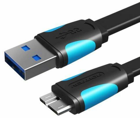 Flat USB 3.0 A male to Micro-B male cable Vention VAS-A12-B200 2m Black The cable allows instant charging and data transfer. In addition, the copper cable is responsible for fast signal transmission. Moreover, the aluminum finish reduces electromagnetic interference, for more efficient operation. The product also supports OTG, so you will connect a smartphone with a hard drive using it. The cable