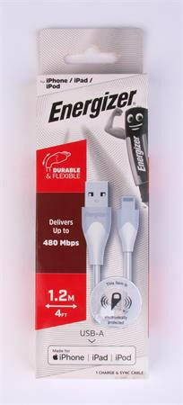 USB kábel, USB-A - Lightning (Apple), 1,2m, ENERGIZER, fehér Válassza a megbízhatóságot, válassza az ENERGIZER töltő-kiegészítőit! USB-A - Apple Lightning kábel adatátviteli sebesség: akár 480 Mbps ellenáll a hajlításnak és csavarásnak töltésre és adatszinkronizálásra töltés 2,4A-ig 1,2 méteres kábelhossz 2 év gyártói garancia
