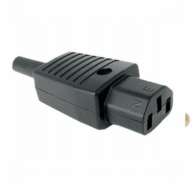 IEC C13 aljzat törésgátlóval 10A/250V 10 A / 250 V "ANYA" csatlakozó Törésgátlóval Műanyag Fekete