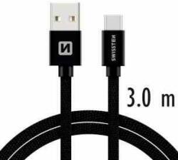 Adatkábel Swissten textil USB-C konektorral és gyorstöltés támogatással, fekete A Swissten adatkábel a minőségi szövet és fém borításnak, és a 3 m hosszúságának hála, ideális lehet az asztalra az...