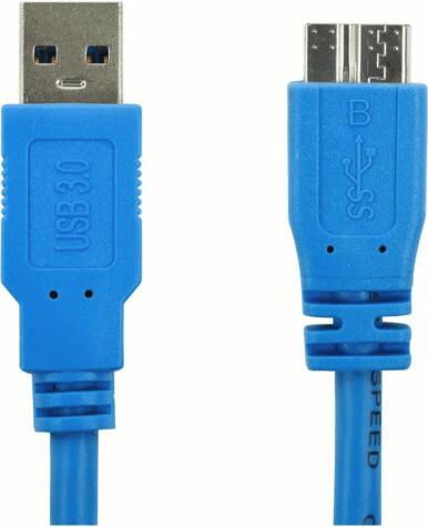 USB 3.0 kábel A-típus/B-típus micro dugó, 1 méter Tipusa: Kör alakú kábel Kábelcsatlakozó 1: USB 3.0, A-dugó Kábelcsatlakozó 2: Micro-USB 3.0, B-dugó Hossz: 1 m Szín: kék