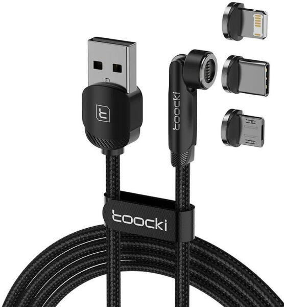 1 méteres mágneses töltő- és adatkábel 3 féle mágneses fejjel. Type C, Lightning és micro USB. 180 fokban dönthető, 360 fokban forgatható fej 5A/3A / 2.4A töltés 480Mbit/s Fast Charging 480 Mb/s adatátviteli sebesség Akár 5 amperes töltés Csatlakozók: USB Type C apa USB Lightning apa USB micro B apa USB 2.0 apa Szín: fekete Hossz. : 1m Fonott kábelköpeny Anyaga : TPE, alumí