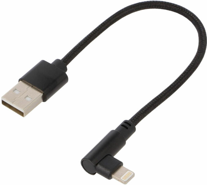 Apple Lightning USB kábel könyök 20cm, fekete szigeteléssel. Kiváló töltés és adatkapcsolat Apple Lightning csatlakozós készülékekhez.
