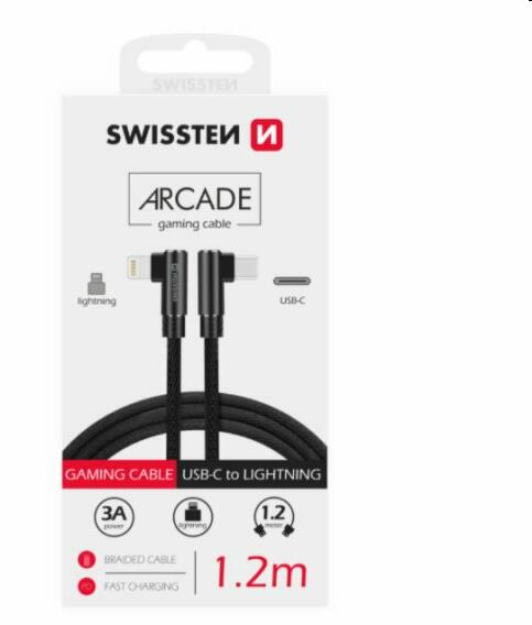 Adatkábel Swissten USB-C/Lightning textil, gyorstöltés támogatással, feketeNULL...