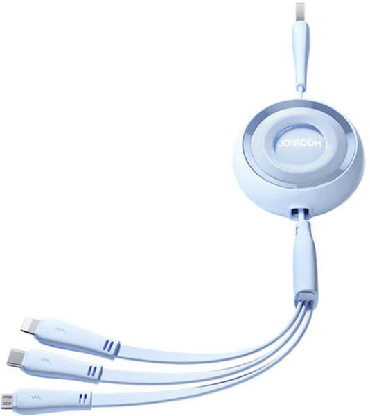 3in1 Joyroom Colorful USB to USB-C/Lightning/Micro USB cable 3.5A, 1m (blue) Joyroom 3-in-1 Colorful USB to USB-C/Lightning/Micro USB 3.5A cable, 1m (blue) The Joyroom 3-in-1 Colorful cable will meet the charging needs of most of your mobile devices. It offers 3.5A charging current and a convenient 1-meter cable that splits into 3 connectors - USB-C, Lightning and Micro USB. You'll conveniently re