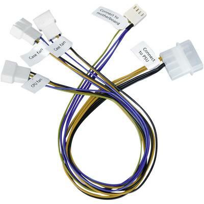 Ventilátor adapter 3 ventilátorhoz, Akasa 4 pólusú ventilátorokhoz alkalmas Ezzel a kábellel max. három PWM ventilátort csatlakoztathat alaplapjának fordulatszám szabályzójához A CPU ventilátor fordulatszámát egy ventilátor csatlakozó rögzíti és adja át az alaplapra. A fordulatszám és ezáltal az összes csatlakoztatott ventilátor (pl. kiegészítő ház-ventilátorok) a P