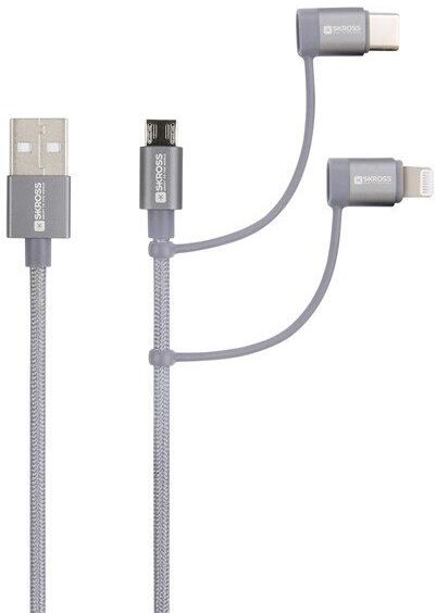 Skross 3IN1CABLE-120-STEEL 1,2m microUSB/Type-C/Lightning adat- és töltőkábel