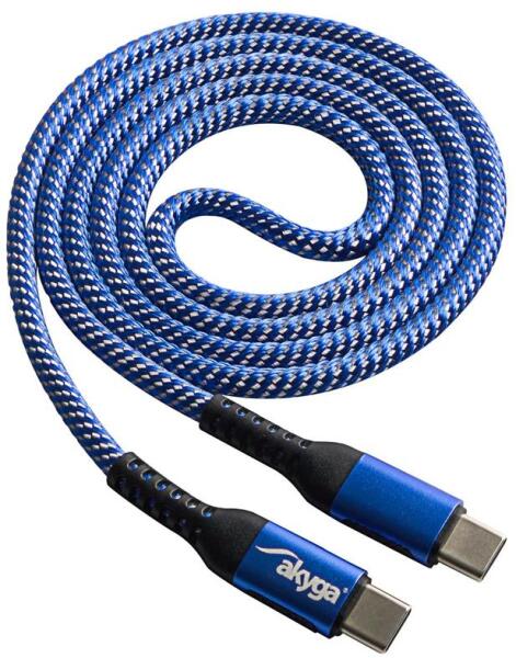 Akyga AK-USB-37 USB-C -> USB-C M/M adatkábel 1m kék-fehér (braided)