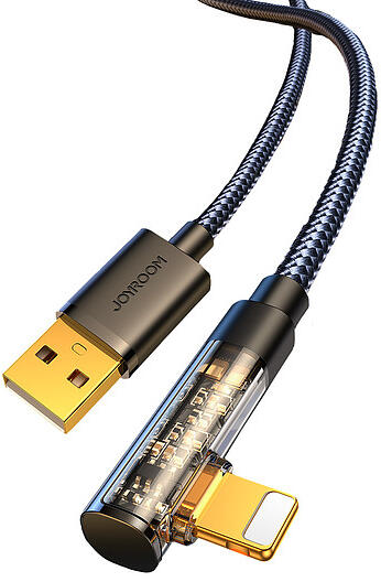 Angled Lightning - USB 2.4A kábel a gyors töltéshez és adatátvitelhez, 1,2 m hosszú - Joyroom S-UC012A6 (fekete) Tökéletes játékhoz, kényelmes mindennapi használatra. A Joyroom márka egy kényelmes, szögletes Lightning - USB kábelt készített, amellyel az iPhone felhasználók különösen elégedettek lesznek. Szeretsz játszani a telefonodon, de aggódsz az akkumulátor állapota