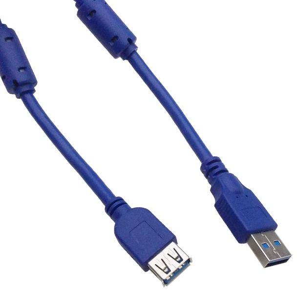 USB 3.0 hosszabbító kábel 3m - USB 3.0 (max. : 5 Gbit/s) - USB A dugó - USB A aljzat - Hossz: 3m, zavarszűrővel - Szín: kék