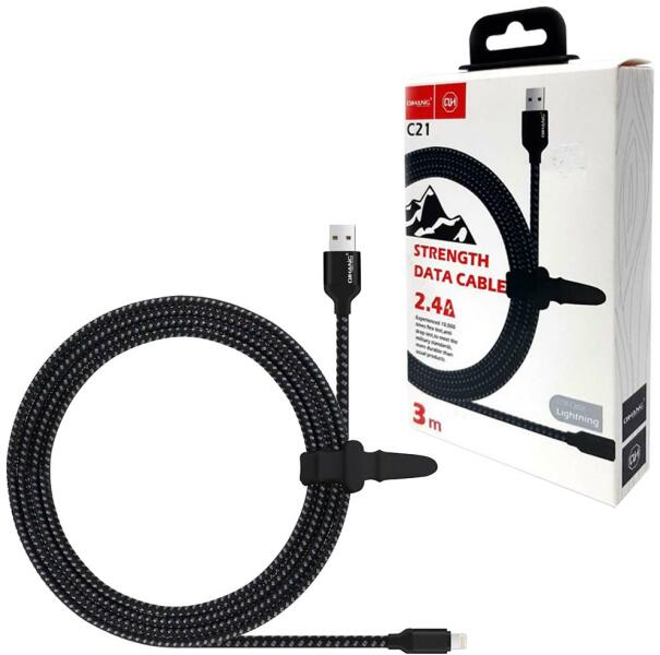 16783 Iphone kábel, 3m kábellel, 2,4A Termék jellemzõi: - A kábel szövet borítással van ellátva a hosszabb élettartam miatt. - Max teljesítmény 2,4A - Kábel hossz: 3m - Feszültség: 12V