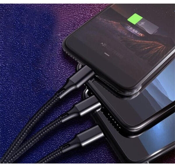Izoxis 3in1 USB Type-C/microUSB/Lightning gyorstöltő kábel kábelhossz: 120 cm