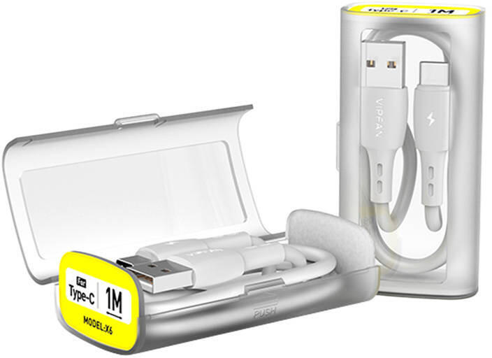 USB és USB-C kábel VFAN X06, 3A, 1m (fehér) USB to USB-C cable Vipfan X06 The USB to USB-C Vipfan X06 cable is housed in a practical package, making it easy to transport and store. The product allows fast charging with a maximum current of 3A, so you can quickly and safely renew the energy of your devices. Thanks to the use of high-quality PVC material, the cable is pleasant to the touch and re