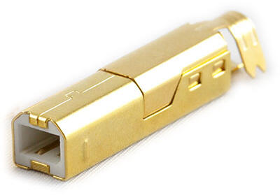 Aranyozott bevonatú, szerelhető USB-B csatlakozó fej, számítógépet és DA konvertert összekötő high end kábel készítéséhez.