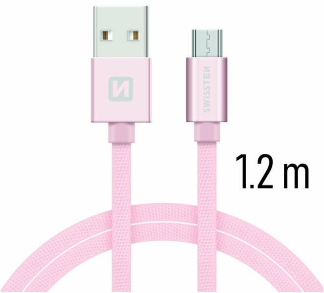 Adatkábel Swissten textil Micro-USB konektorom gyorstöltéssel, Rose GoldNULL...