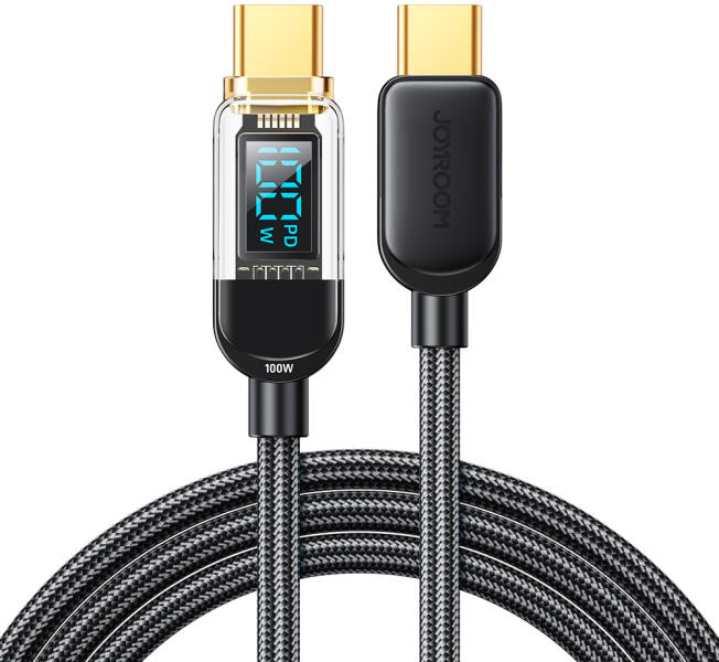 Akár 100W-os USB C-ről USB C-re kábel gyors töltéshez és adatátvitelhez 1.2m - Joyroom S-CC100A4 (fekete) Kényelmes kábel utazáshoz, otthonra és irodába - ez a Joyroom S-CC100A4. A két USB C csatlakozó biztosítja a kompatibilitást az eszközök nagyon széles skálájával: laptopok, telefonok, táblagépek, powerbanks vagy játékkonzolok. Az 1,2 méteres kényelmes hossza sok hel