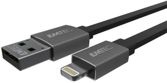 USB kábel, USB-A - Lightning (Apple), EMTEC "T700A" - EKT700A - Kábelek iPhone készülékekhez - Elegáns és stílusos kialakítás: fém burkolat és lapos TPE puha tapintású kábel. kábelhossz: 120 cm