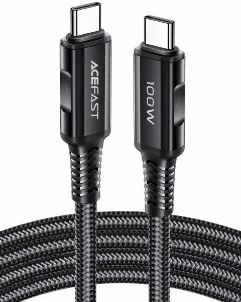 ACEFAST C4-03 - Type-C (USB-C) / Type-C (USB-C) fekete szövet kábel, 2m, 5A. Töltést és adatátvitelt is lehetővé tesz, valamint 100 W PD teljesítményt a beépített chipen keresztül. A TPE konstrukciónak köszönhetően tartós használatot biztosít.