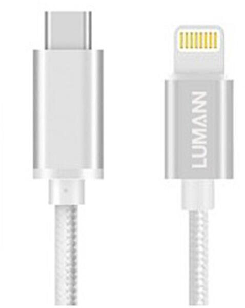 Lumann - Type-C (USB-C) / Lightning ezüst szövet adatkábel 1m.