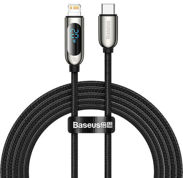 Kompatibilis USB-C / iPhone kábel töltéshez és adattovábbításhoz. A töltés teljesítményét a vezetéken beépített kijelző mutatja. A vezeték hossza 1 m. Maximum terhelhetőség: 20 W.