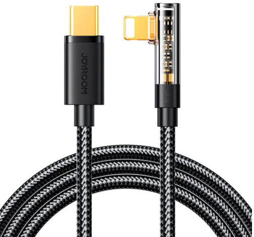 Joyroom S-C Lightning Angle 20W 1.2m USB to USB-C Lightning cable S-CL020A6 (black) Renew your device's power quickly with the Joyroom S-CL020A6 cable. The product supports the PD 20W fast charging protocol, and the gold-plated connectors and nylon braid extend the life of the product. In addition, it offers 480 Mbps signal transmission. Fast device charging and file transfer The cable supports th