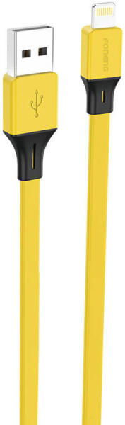 Foneng X96 USB-A to Lightning cable 2.4A, 1m (yellow) Foneng X96 USB-A to Lightning cable 2.4A, 1m (yellow) The 1m long Foneng X96 cable is distinguished by its flat design made of high-quality TPE material. This makes it not only gentle and skin-friendly, but also resistant to bending, abrasion and other damage. The self-retracting design prevents the cable from tangling, ensuring convenient use