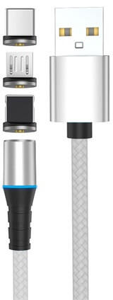Stansson 1m 3in1 mágneses fejű microUSB/Type-C/Lightning fonott kábel Gyorstöltésre alkalmas, szinkronizáló és töltő kábel, többféle termékkel is kompatibilis