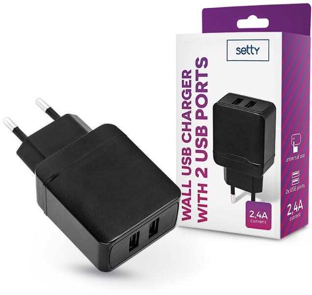 - A Setty 2,4A áramot támogató fali USB-töltővel gyorsan töltheti telefonját vagy más mobileszközét. - A készülék 2 USB-A kimenettel van felszerelve, így egyszerre két készüléket tölthet. - Egyszerű kialakítása és kompakt mérete lehetővé teszi, hogy mindig magával hordhassa. - Kimeneti USB portok száma: 2 db - Csatlakozó: USB - Kimeneti port típusa: 2x USB - Bemeneti