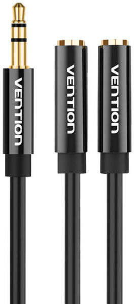 3.5mm male to 2x 3.5mm female stereo splitter 0.3m Vention BBSBY black This compact audio splitter is the perfect solution when you want to listen to music or watch movies with your friend without having to share one headphone. Just plug it into your audio device, and with two 3.5mm female jacks, you can enjoy audio for two. Exceptional sound quality The splitter is designed to maintain the highes