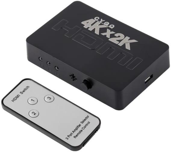 4K 3 portos HDMI Switch, átkapcsoló, távirányítóval Ez a HDMI mini váltó nemcsak key-press-switch funkcióval, hanem intelligens funkcióval is rendelkezik. Ez a fajta erősítő mini Switcher a nagy felbontású videót (több felbontásban 1080p-ig) és a digitális hangot a több forrás bármelyikéről továbbítja a megjelenítő egységekhez. Az All in csatlakozók a HD-DVD-vel egyi
