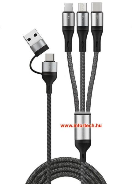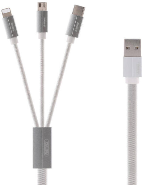 Remax Kerolla 3in1 USB cable, 1 m (white) The Remax Kerolla 3in1 USB cable is a reliable accessory that allows you to charge different devices! It features 3 different connectors - Lightning, Micro USB and USB-C. It also allows data transmission at speeds of up to 480 Mbps. High-quality material has been used to make it, so it will serve you well for a long time. Fast charging for your device Now