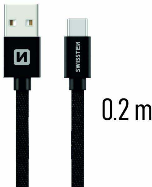 Swissten textil adatkábel USB-C konnektorral gyorstöltéssel, Fekete A Swissten adatkábele nagy sebességű 480 Mb/s sebességű adatátvitelre is képes, és természetesen töltésre is használható, akár erős, 3 A...