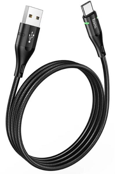 HOCO U93 - USB / Type-C (USB-C) fekete szövet kábel, 3A, LED -es 1,2m. Töltésre és eszközök közötti adatátvitelre egyaránt használható. A beépített LEDtájékoztat az áramforráshoz való csatlakozásról és megkönnyíti a kábel éjszakai megtalálását. Az optimális hosszúság növeli a kábel használatának kényelmét, és lehetővé teszi az okostelefonnal való szabad m