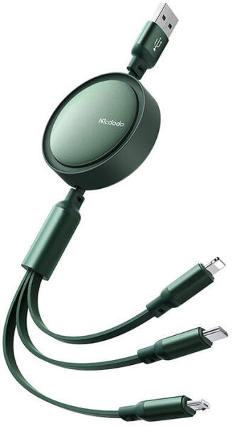 3in1 USB to USB-C / Lightning / Micro USB Cable, Mcdodo CA-7257, 3.5A, 1.2m (green) 3in1 USB to USB-C / Lightning / Micro USB Cable, Mcdodo CA-7257, 3.5A, 1.2m (green) Charge 3 devices simultaneously and enjoy convenience. The Mcdodo CA-7257 3-in-1 cable is equipped with 3 connectors (USB-C, Lightning, micro USB), making it compatible with most devices available on the market – you don't need to