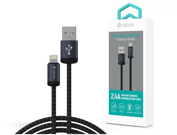 Devia ST108035 Gracious v2 12W USB/Lightning 1m -es fekete adat-és töltőkábel