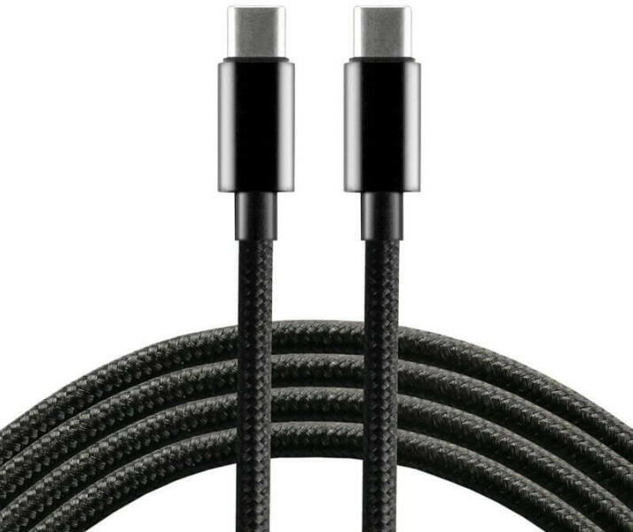 USB Type-C töltőkábel, 2 m hosszú, fekete színű szövet borítással. 60 W / 3 A gyorstöltő kompatibilis. Töltésre és adatátvitelre egyaránt használható.