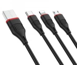 Termékjellemzők: Csatlakozók: Micro-USB, Type-C, Lightning Hosszúság: 1,2 méter Anyag: Magas minőségű műanyag és réz vezetékek Szín: Fekete Töltési sebesség: Akár 3A támogatás Kompatibilitás: Széles körben kompatibilis az Android és iOS eszközökkel Kényelmi funkciók: ...