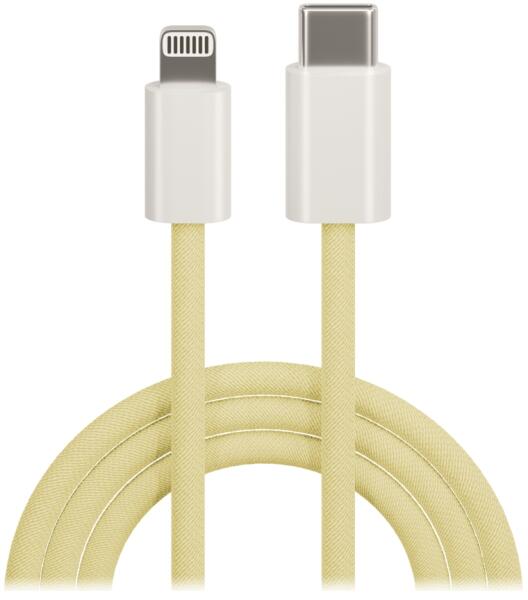 MaxLife MXUC-06 - Lightning / Type-C (USB-C) sárga szövetkábel 1m, 20W. Elegáns és tartós csatlakozók, ellenállnak a kopásnak és az oxidációnak. A kábel köré fonott nejlonszálas szövet tartósságot és rugalmasságot biztosít. A kábel 20 W-ig továbbítja a töltési teljesítményt, és biztosítja a telefon és az akkumulátor biztonságát. Az intelligens töltés megakadál
