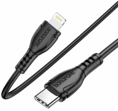 Leírás Borofone 100cm-es töltőkábel usb-c és lightning csatlakozóval. Kompatibilis Apple mobiltelefonokkal és tabletekkel. Hosszúság: 1m, súly: 17g. 2. Külső anyag: PVC. 3. Csatlakozó anyaga: PVC. 4. Vezetékmag: 120 darab ötágú rézhuzal, amely támogatja az adatátvitelt. 5. Támogatja az 5V/2,4A, nem támogatja a PD gyorstöltési protokollt.