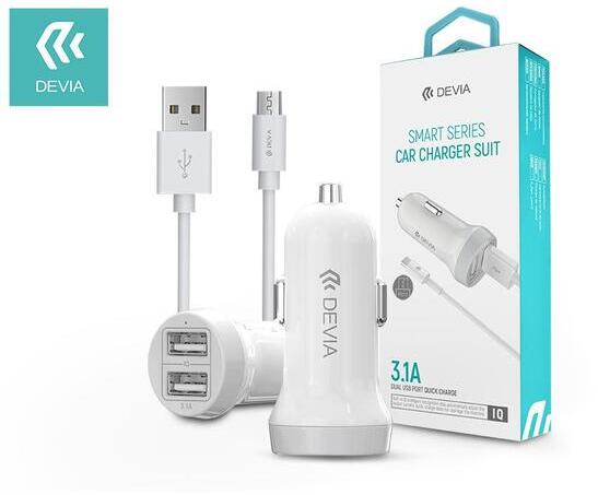 Devia Smart Series Dual USB-A szivargyújtó töltő + micro USB kábel, 1m, 3,1A, fehér