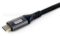 4 az 1-ben kábel karabínerrel. USB bemeneti csatlakozó valamint kimeneti egység: két oldalú csatlakozó IOS készülékekhez, micro USB valamint C-típusú csatlakozó. Alkalmas a legelterjedtebb telefonkészülékek töltésére. ABS burkolattal valamint 10 cm hosszú nejlon, fonott kábellel. Legfeljebb 2.1A-es töltéshez.