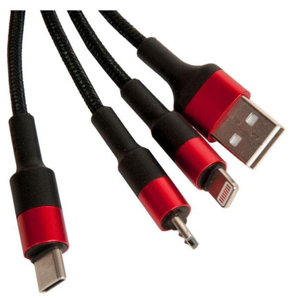 Hoco X26 - 3in1 kábel - USB - Lightning / Type-C / MicroUSB fekete/piros kábel 2A, 1m. Támogatja a gyorstöltési funkciót, de nem támogatja az adatátvitelt!