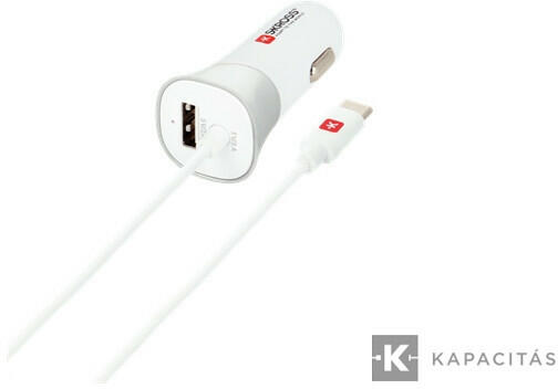 SKROSS autós USB töltő, USB-C kábellel, plusz USB-A csatlakozóval. Max kimenet 3,4 A