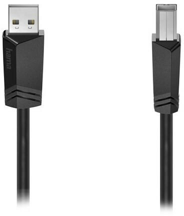 Nyomtató kábel HAMA USB-A/USB-B 5m fekete USB-A -USB-B kábel - PC, notebook, MacBook, nyomtató, szkenner vagy fax csatlakoztatására digitális adatok, jelek és tápellátás átviteléhez Nagy sebességű, akár 480 Mbps sebességű adatátvitel Kettős árnyékolás az elektromágneses interferencia csökkentése érdekében A rugalmas anyagok optimális csomóvédelmet garantálnak és me
