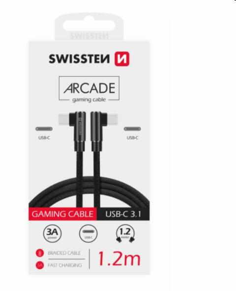 Adatkábel Swissten USB-C/USB-C textil, gyorstöltés támogatással, fekete A Swissten Arcade adat- és töltőkábel 1,2 m hosszú, és L-csatlakozóval rendelkezik a kényelmes töltéshez játékok vagy videók megtekintése közben...
